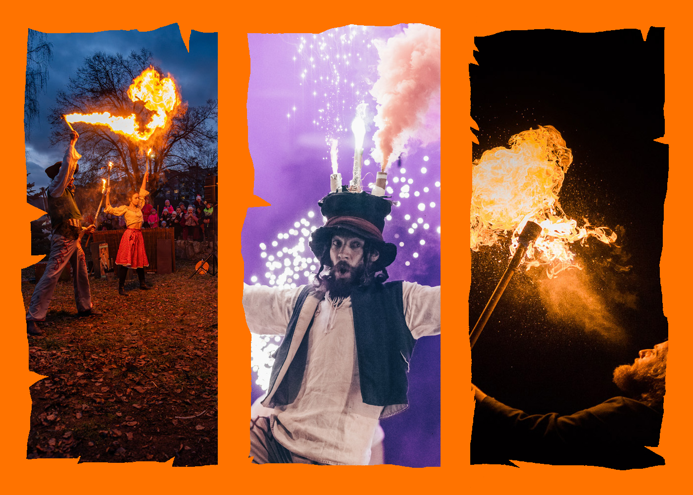 - piatok večer – fire jam a ohňová show v meste