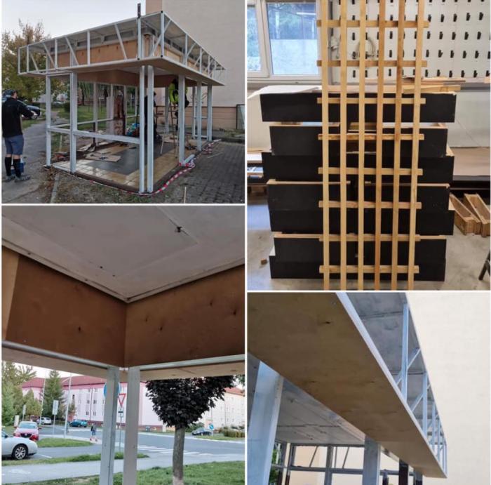 BÚDA dnes dostáva nový plášť v podobe preglejkových boxov a tvári sa zatiaľ veľmi temno. Konečný vizuál Vám ale napovie, že tmavé časti budú prekryté agátovým drevom, ktoré BÚDU rozžiari.