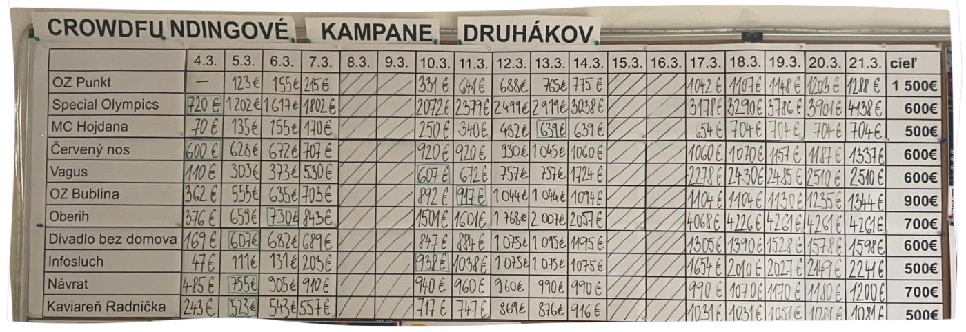 Po minuloročnej vyzbieranej sume sme si hovorili, že latka je poriadne vysoko. Teraz máme za sebou prvé dni kampaní a napriek tomu, že sme cieľovú sumu študentom navýšili, zdá sa, že ak pôjdu takto ďalej, vyzbierajú viac ako minulý rok. :)