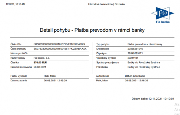 z projektu bolo celkovo nakúpených 35 búdok typu APUS3, 6 z nich je už oficiálne osadených na dvoch bytových domoch. Na budove 2020 na sídlisku Rozkvet boli osadené 4 A3 a na budove v Ilave ďaľšie 2 A3, ďaľšie osádzanie bude prebiehať v nasledujúcej zatepľovacej sezóne. Nákupná cena je vyššia ako vyzbieraná suma, pretože, sme dostali dodatočný finančný dar po ukončení zbierky, takže výsledná suma bola až 1200€. Zvyšných 20 búdok sa nachádza u kolegyne o pár dedín vedľa, kvôli ich rozmerom a problémom so skladovaním v malej pivnici. Na priloženej foto je fotografia inkriminovanej budovy 2020, z júla, na ktorej sú už dnes búdky úspešne osadené. V prílohe sú uvedené aj doklady o prebehnutých platbách.