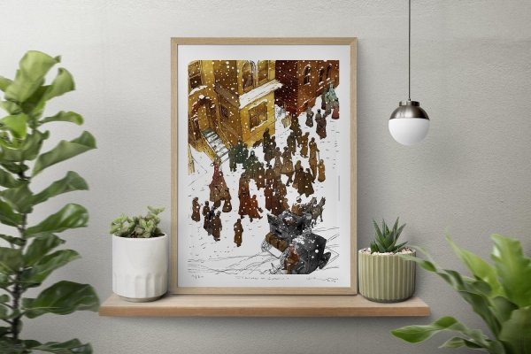 Ilustrácia Dievčatko so zápalkami, rozmery A4: 210x297 mm, s podpisom ilustrátora, vhodná na zarámovanie.