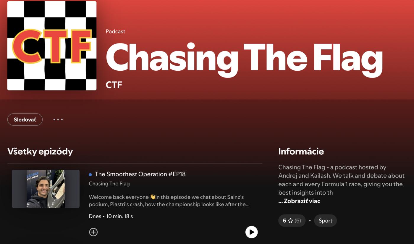 S podcastom sme začali v januári 2025. Aktuálne nahrávame 18. epizódu, ktorú si môžete vypočuť na Spotify alebo Apple Podcast . Našim cieľom je priblížiť Formulu 1 novým fanúšikom a pozdielať svoj osobný názor s našimi sledovateľmi. Podcast nahrávame v angličtine, nakoľko môj kamarát je z Talianska.