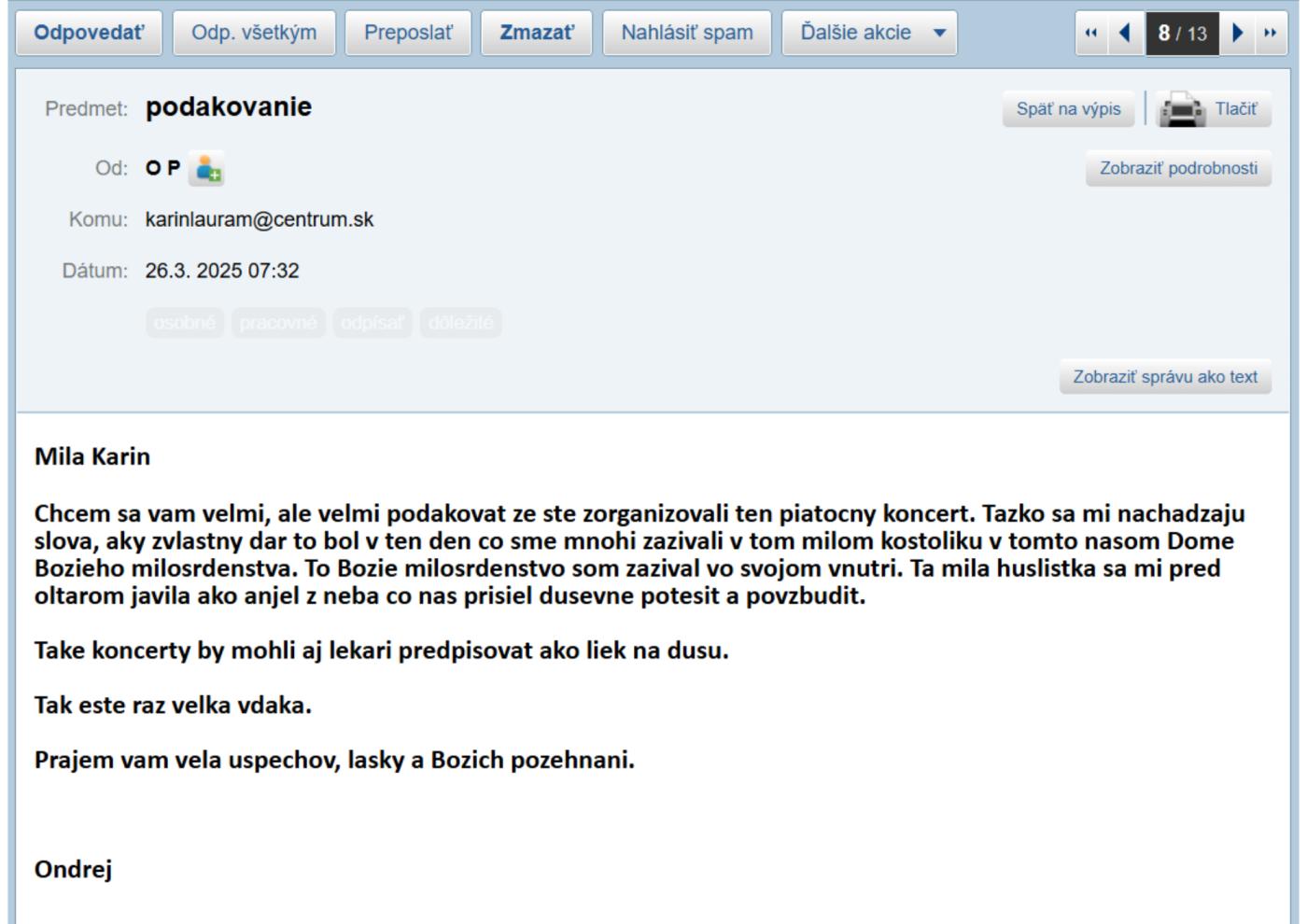 ,,Váš koncert je ako balzam na dušu. Ďakujem.“