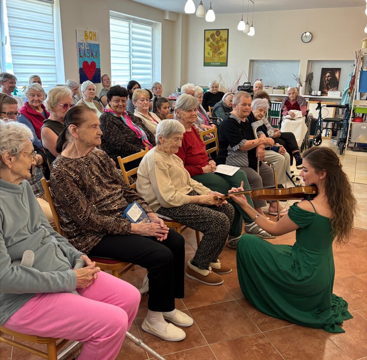Ak by boli niektorí klienti zariadenia zo zdravotných dôvodov pripútaní na lôžko, rada ich navštívim priamo na izbách, aby aj oni mohli prežiť vianočný okamih naplnený hudbou.