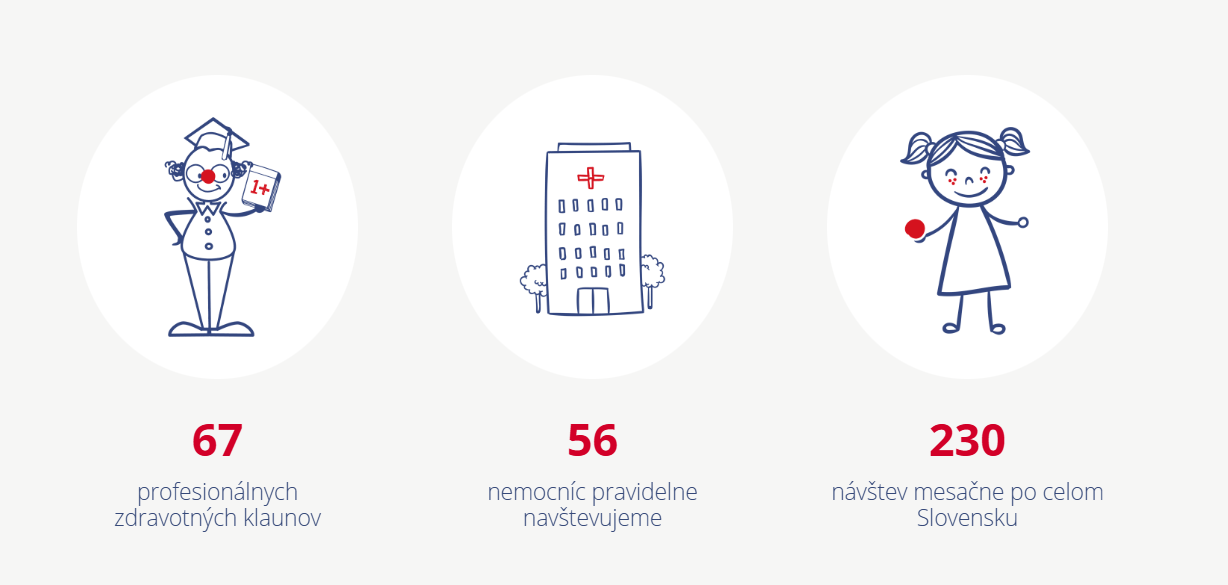 ČERVENÝ NOS Clowndoctors je občianske združenie, ktoré už viac ako 21 rokov pravidelne prináša prostredníctvom klaunského umenia smiech a nádej deťom v nemocniciach a seniorom v seniorských zariadeniach po celom Slovensku.