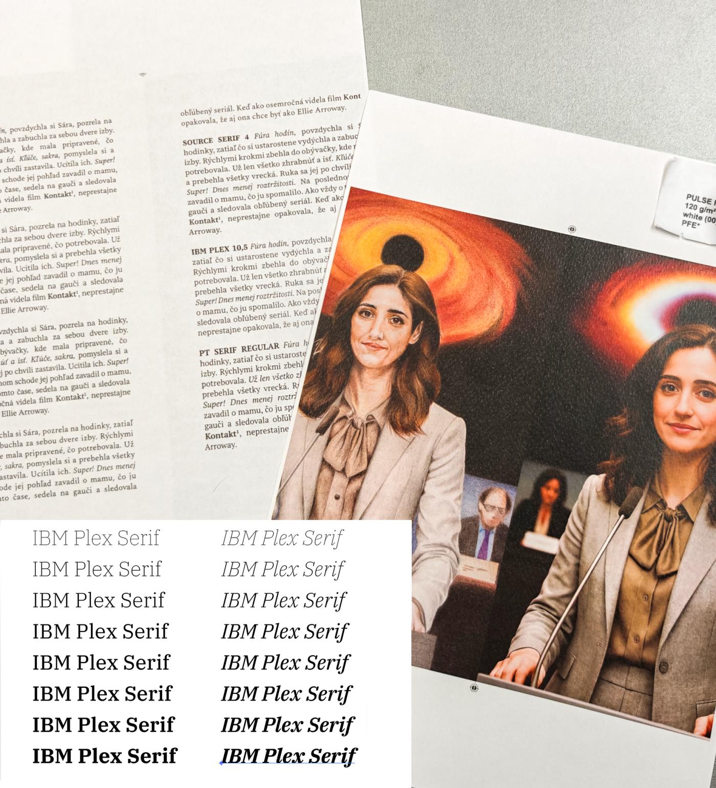 Román si ho maximálne zaslúži a jeho štruktúru sme si okamžite zamilovali. Náročný bol aj výber správneho písma a po teste na viacerých čitateľoch padol jasný výber na IBM PLEX Serif, ktorý sa zo všetkých najlepšie čítal.