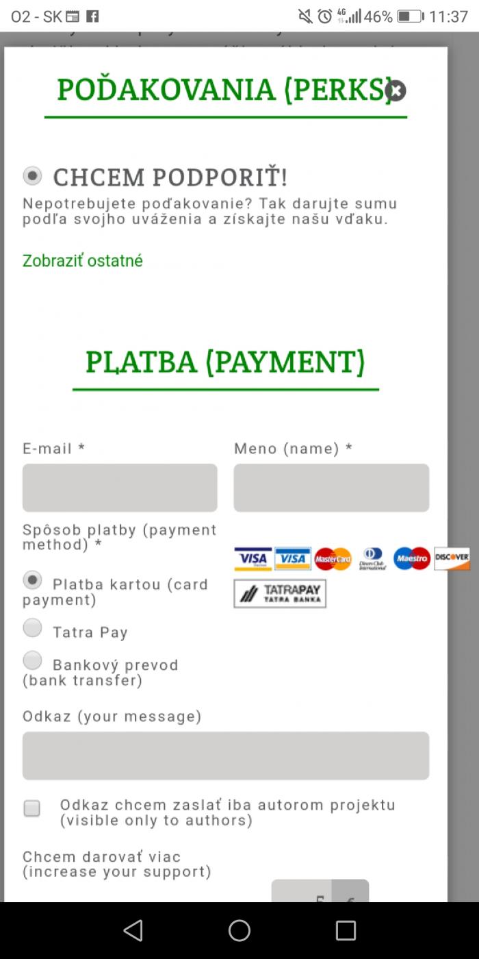Mnohí sa ma pýtate ako podporiť projekt cez telefón a vybrať si odmenu. Mobilná verzia Startlab.sk vyžaduje rozkríknutie zobraziť ostatné, aby ste si mohli vybrať odmenu. Ďakujem☘.